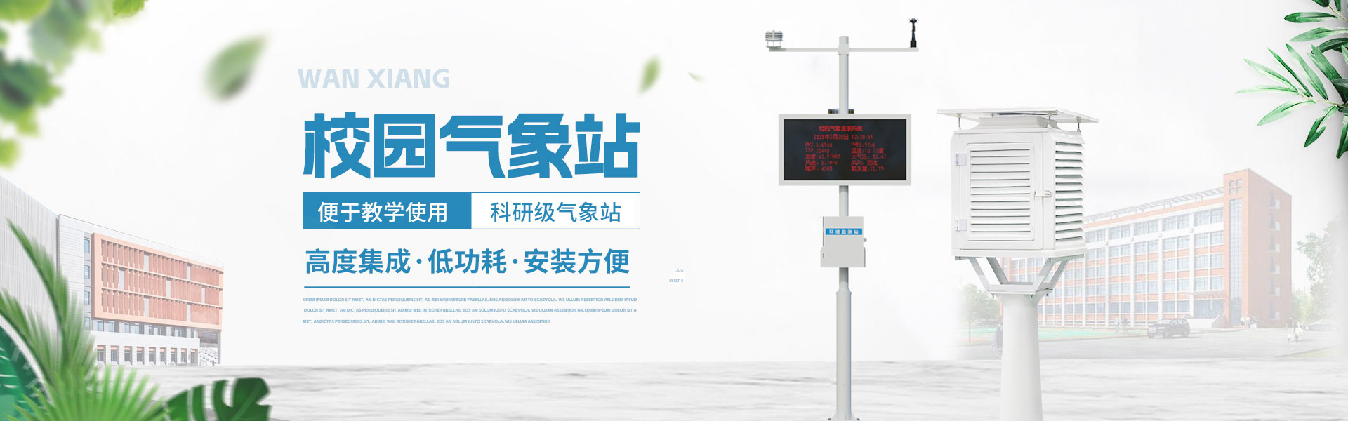 山東萬象環(huán)境科技有限公司官網(wǎng)主要產(chǎn)品有防爆氣象站,校園氣象站,農(nóng)業(yè)氣象站,負(fù)氧離子監(jiān)測站,超聲波氣象站,歡迎咨詢13276362033!